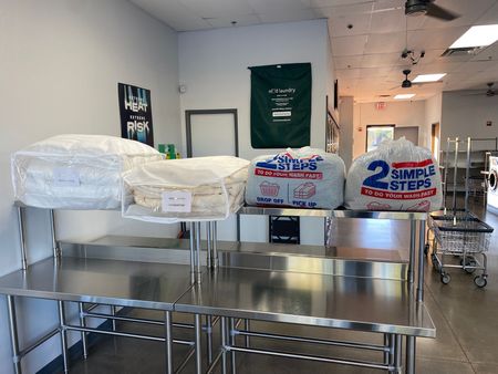 - Self-Service: Stop in anytime and do your laundry yourself. A load of laundry will take less than 1 hour. Our comfortable waiting area has plenty of seating and we are kid and pet friendly. Enjoy free Wifi, clean restroom, and plenty of vending options available!